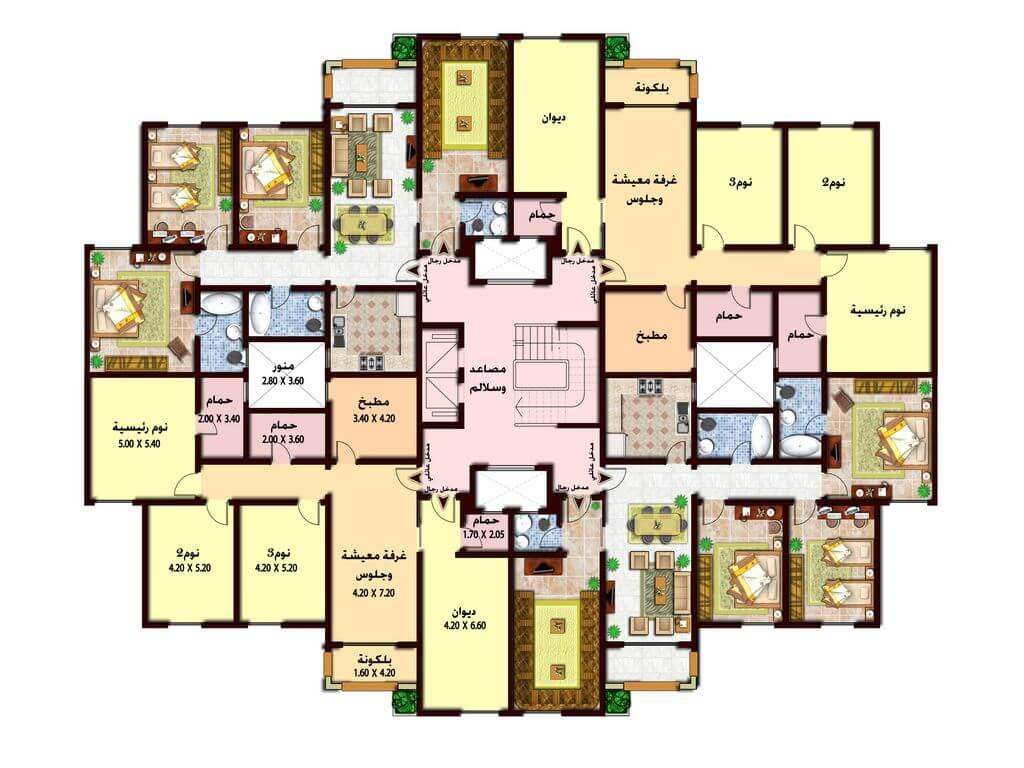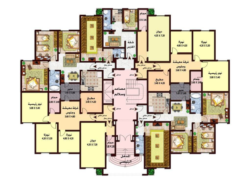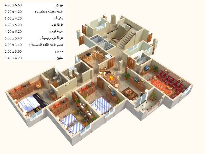الاستقبال والصالون وغرفة الطعام و غرف النوم